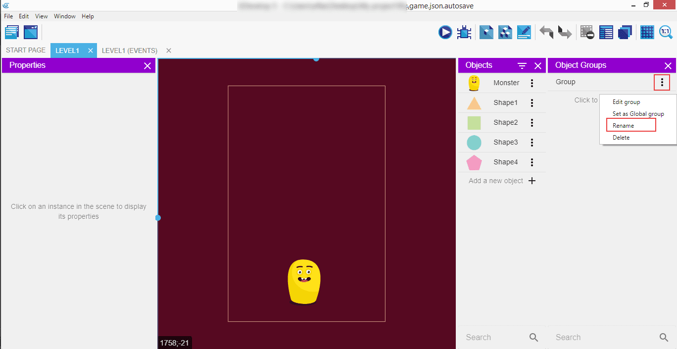Rename the group to "Shapes", and confirm.